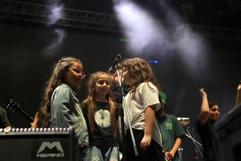 Párrafo aparte fue la invitación que Mollo y los integrantes de la banda les hicieron a 12 alumnos de la escuela de música “La Vuela” para tocar junto el tema: “El burrito”.