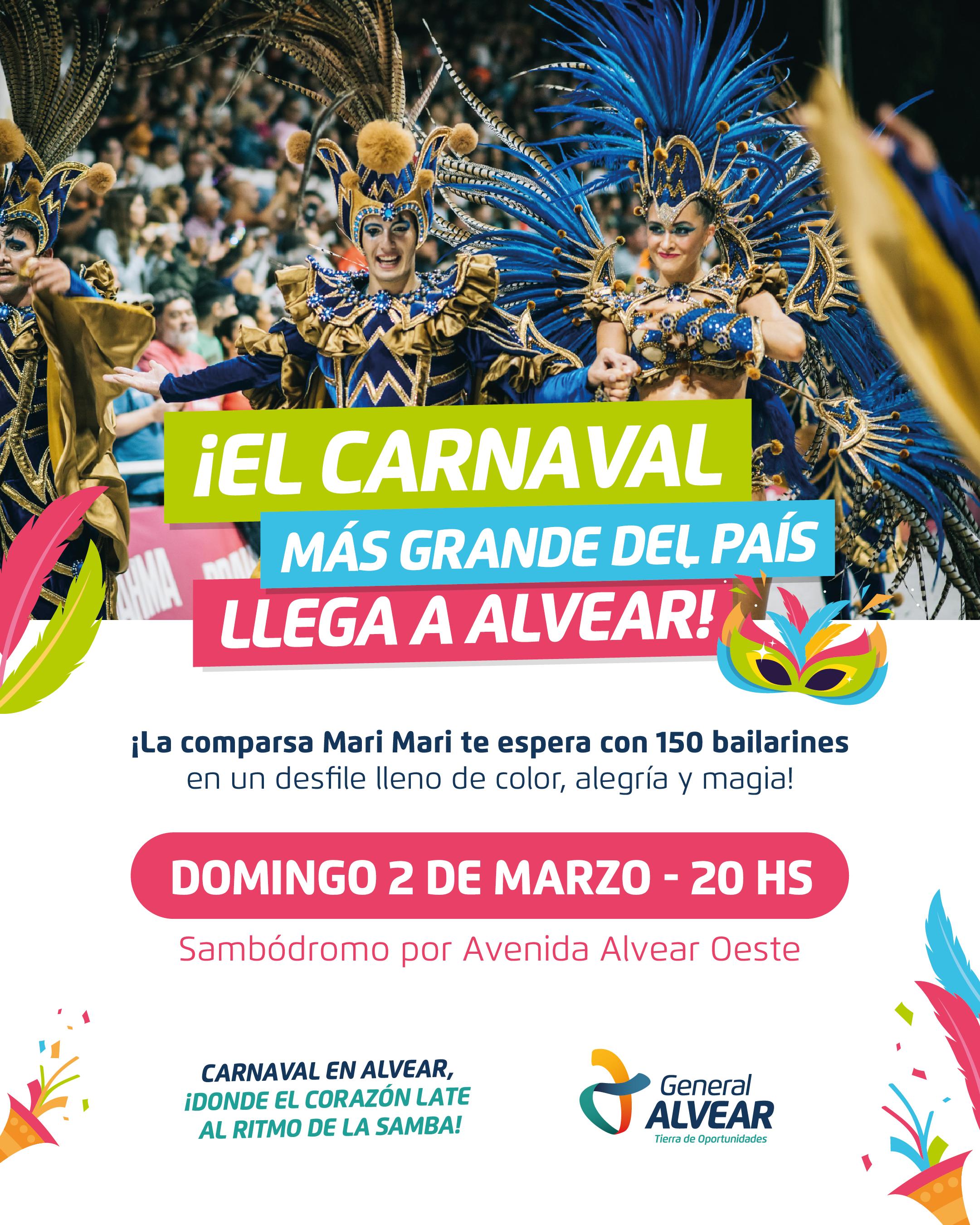 l próximo domingo 2 de marzo, a partir de las 20 horas, la Avenida Alvear Oeste se transformará en un vibrante sambódromo para celebrar el esperado Carnaval de General Alvear.