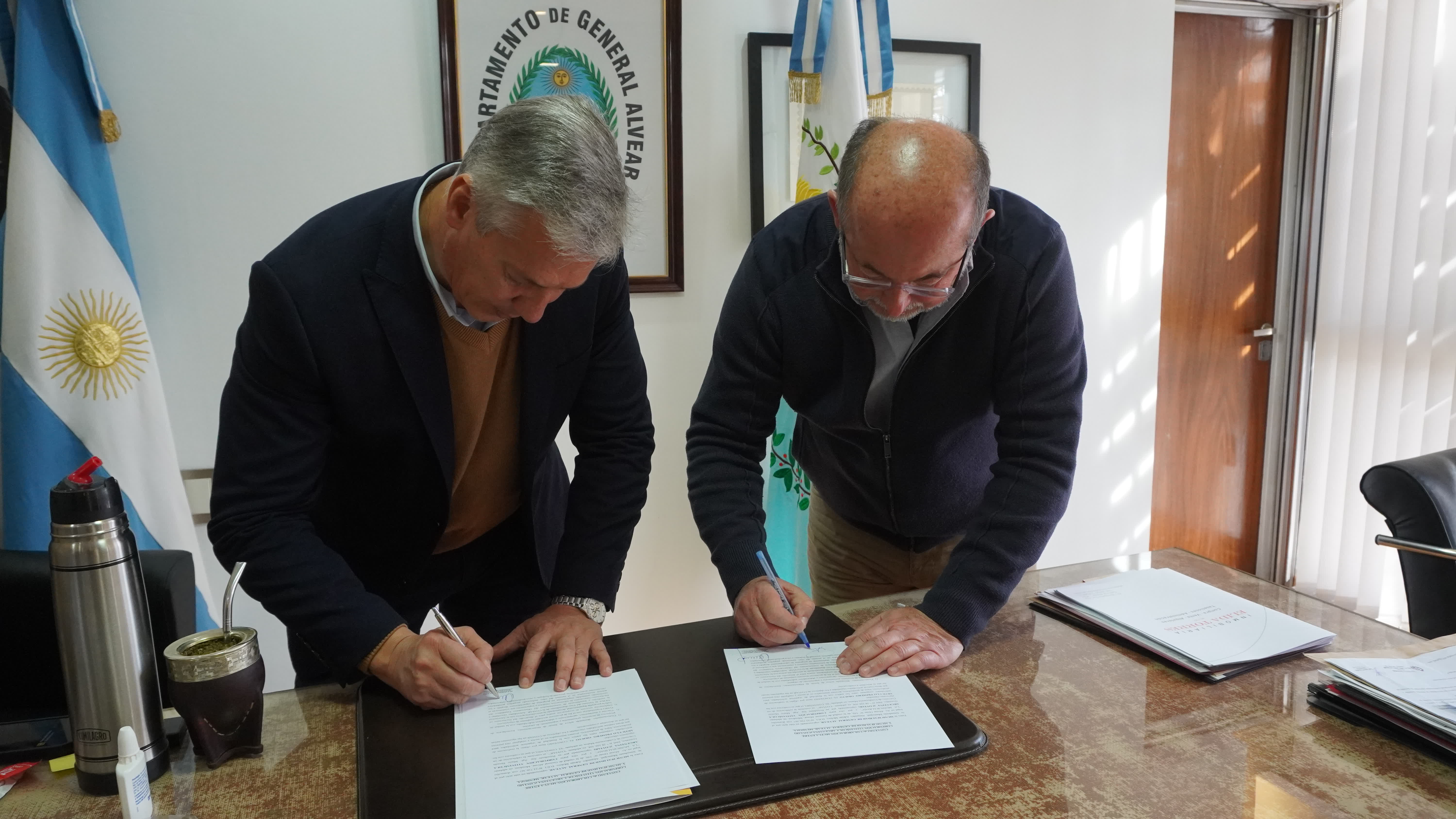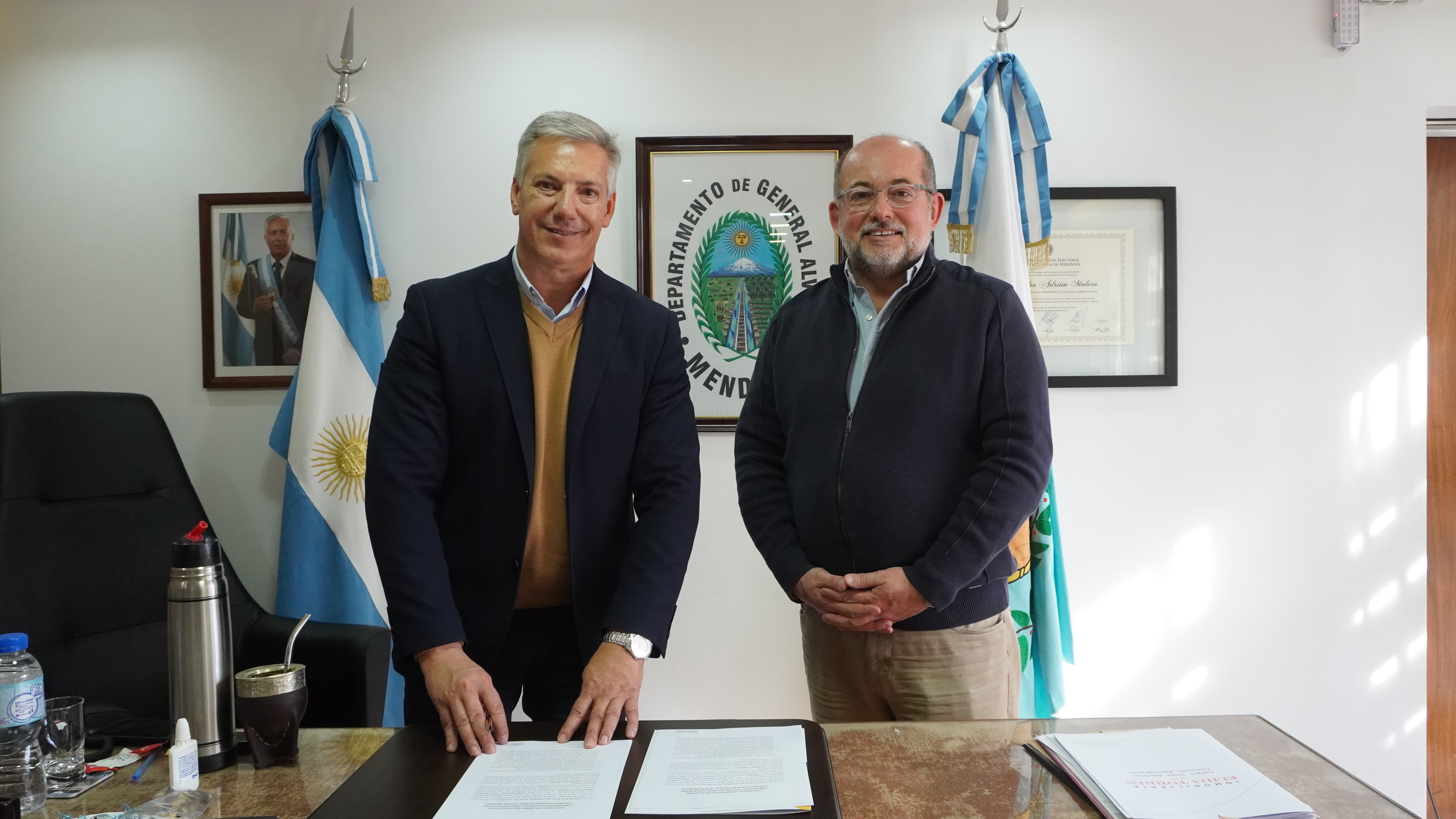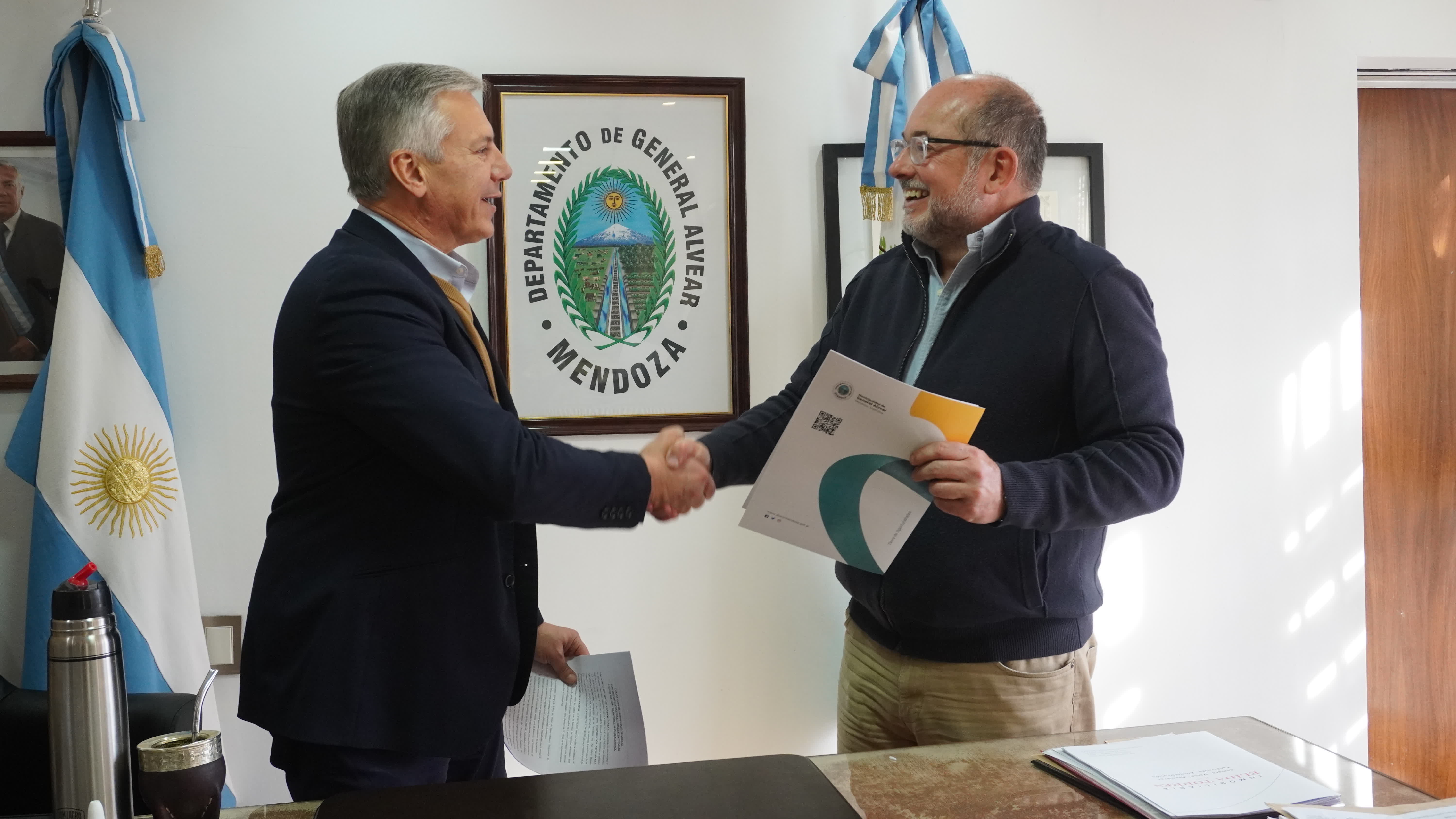 En la sala de intendencia de la Municipalidad de General Alvear se concretó la firma de un convenio de cooperación entre la Corporación Vitivinícola Argentina (COVIAR)
