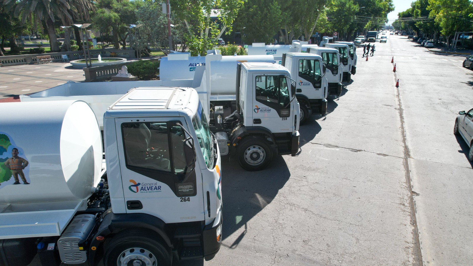 En ese marco, indicó que los camiones serán distribuidos en todo el departamento. “Son 12 camiones en total; estamos presentando los primeros ocho, que son camiones regadores y volcadores, y cada uno irá a los distritos para mejorar el servicio que se brinda a los vecinos”, afirmó.